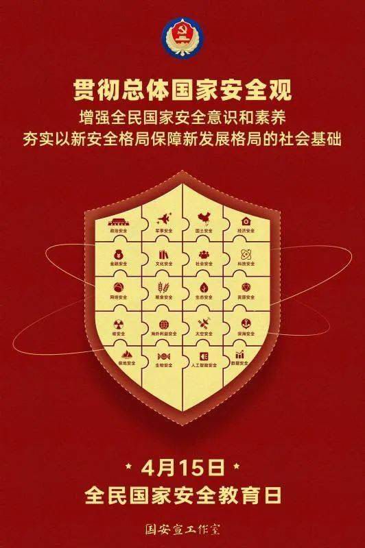 《中華人民共和國***法》第十四條明確規定,每年的4月15日是全民***教育日。今年的4月15日是第八個全民***教育日,主題是“貫徹總體***觀,增強全民***意識和素養,夯實以新安全格局保障新發展格局的社會基礎。